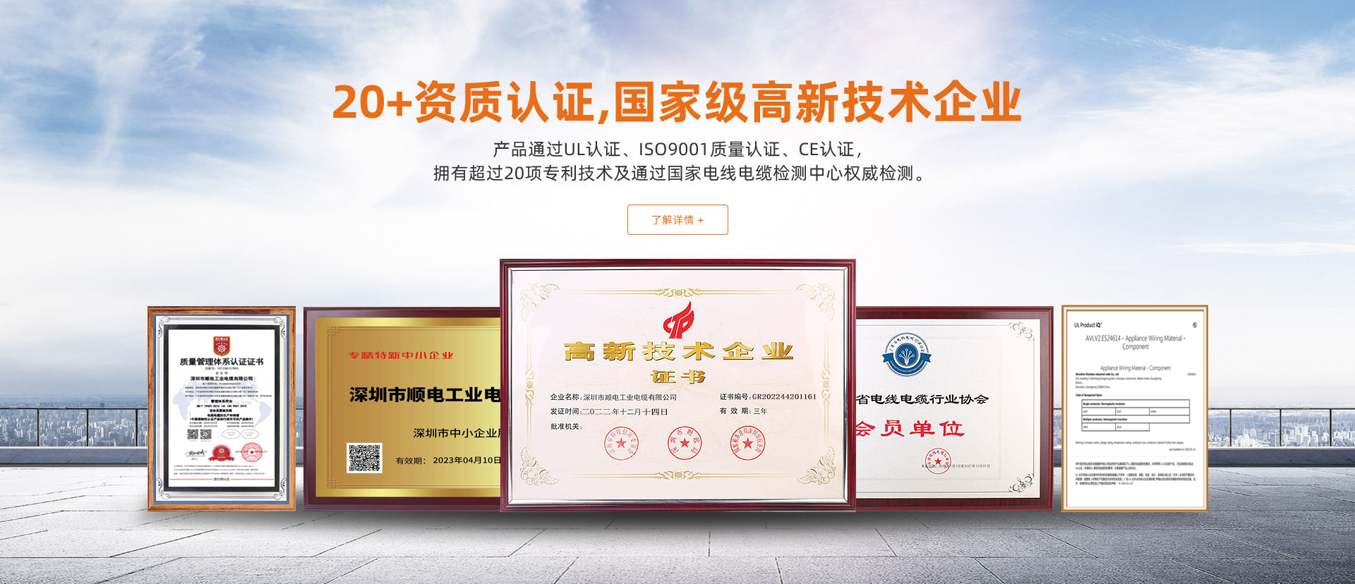 國家級高新技術(shù)企業(yè),產(chǎn)品通過UL認(rèn)證、ISO9001質(zhì)量認(rèn)證、CE認(rèn)證,擁有超過十五項(xiàng)專利技術(shù)及通過國家電線電纜檢測中心權(quán)威檢測。